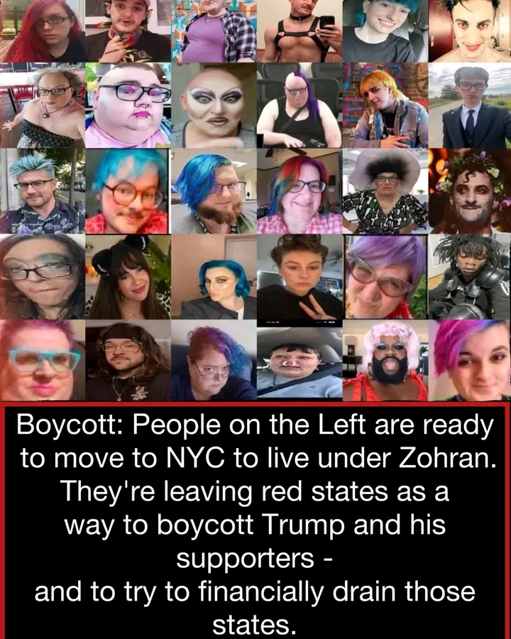 Boycott: People on the Left are threatening to leave red states for New York City to live under Zohran, boycott Trump supporters, and financially hurt the states they’re leaving behind.