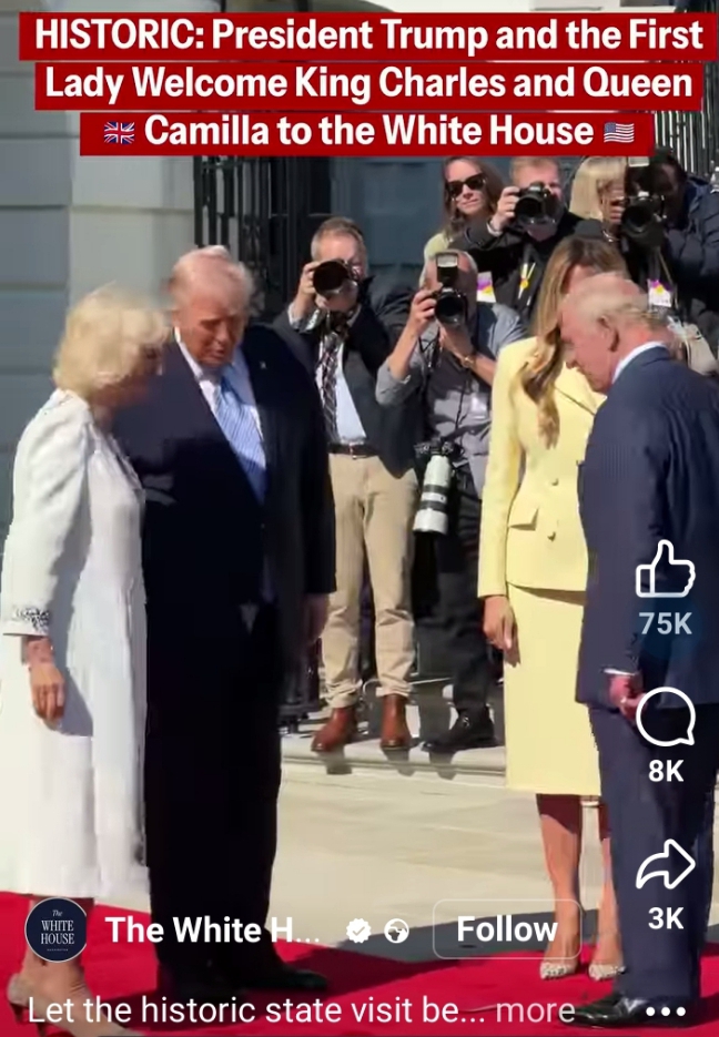 The ceremonial doors of the White House opened to a moment steeped in history and symbolism as President Donald J. Trump and First Lady Melania Trump welcomed King Charles III and Queen Camilla for an official state visit.