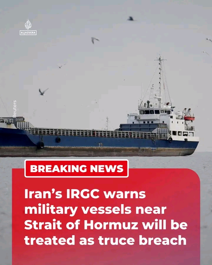 Breaking News: Iran Warns Military Vessels Near Strait of Hormuz Will Be Treated as Ceasefire Violations. see what happens next