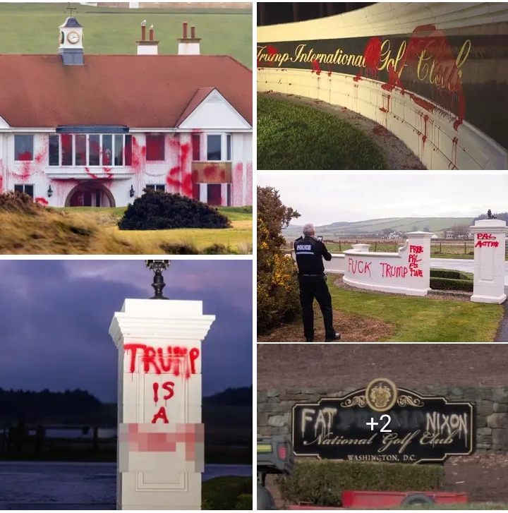 Former U.S. President Donald Trump’s luxury Turnberry estate in Scotland was vandalised overnight, after red paint and graffiti were sprayed across parts of the historic property, prompting a police investigation into what authorities have described as criminal damage.