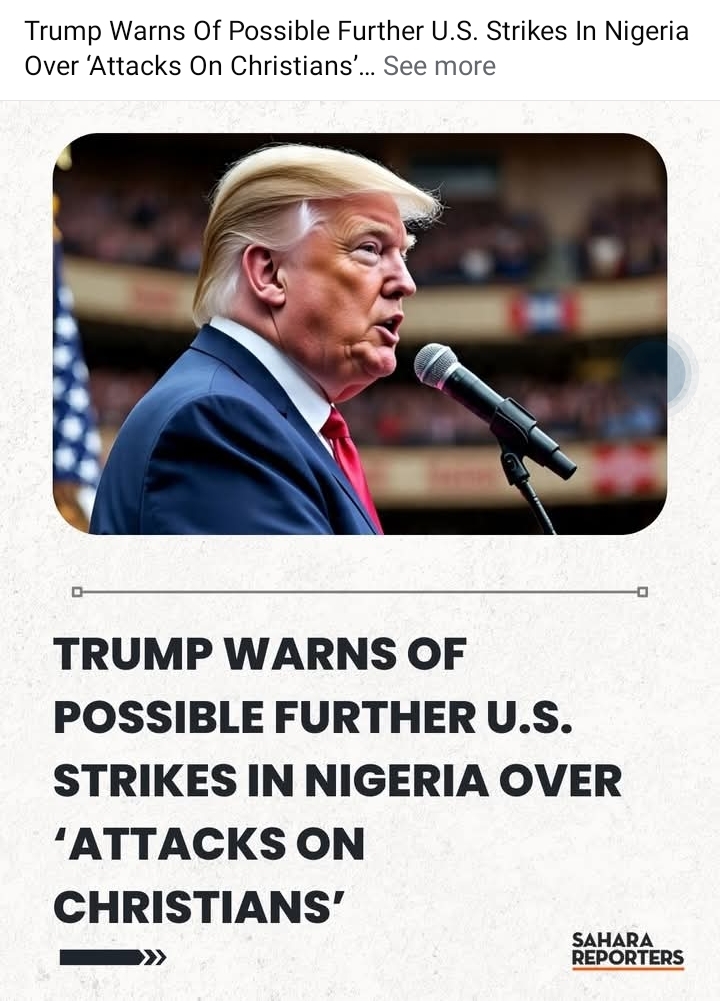 Breaking News:Trump Warns of Possible Further U.S. Strikes in Nigeria Over Alleged Attacks on Christians.