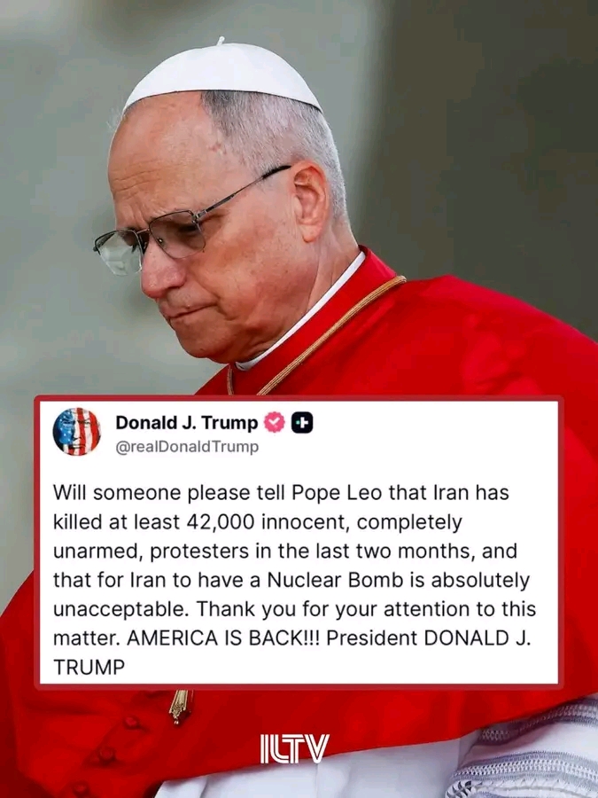 In a Truth Social post, Trump defended his stance on Iran, writing, “will someone please tell Pope Leo that Iran has killed at least 42,000 innocent, completely unarmed, protesters in the last two months” and that “for Iran to have a Nuclear Bomb is absolutely unacceptable.”