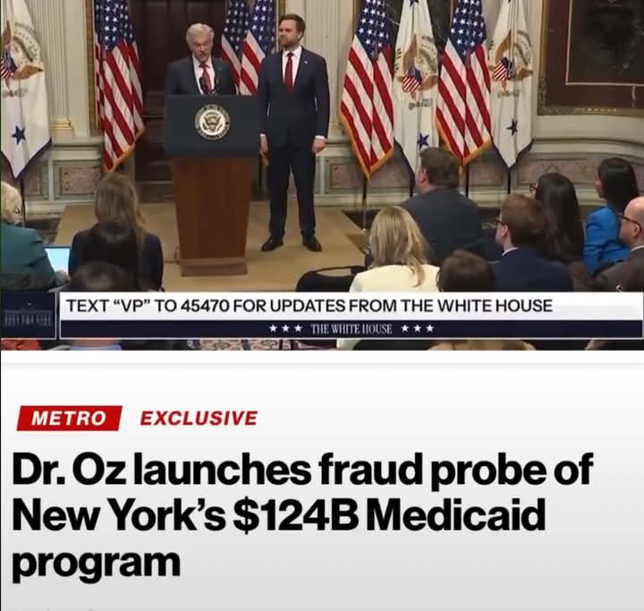 Dr. Oz has officially launched an investigation into New York’s $124 BILLION Medicaid program, Get ready for a meltdown from Hochul and Mamdani.