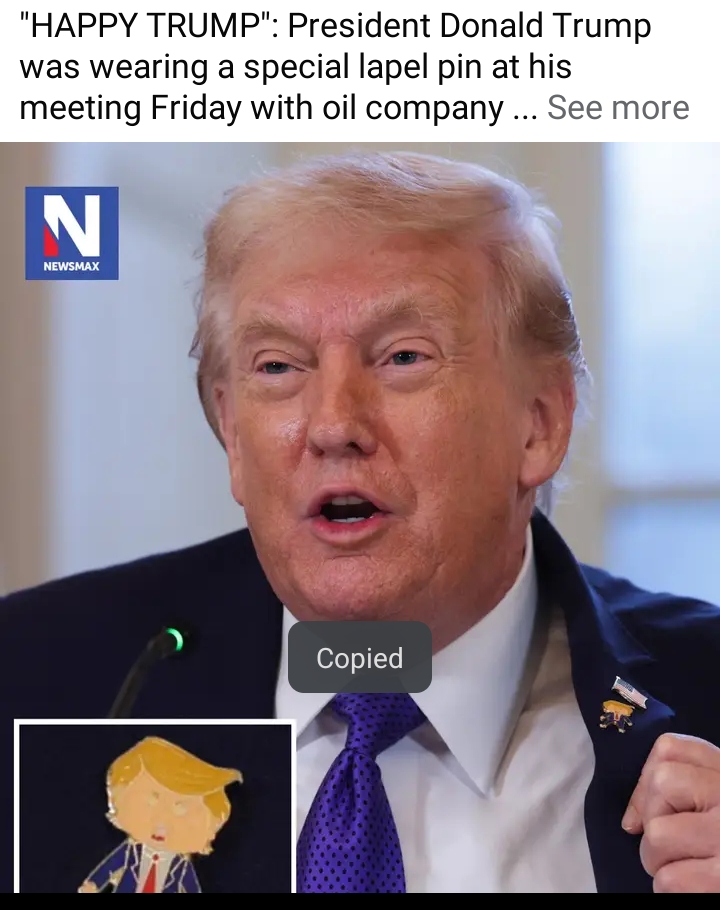 President Donald Trump drew attention during a high-level meeting Friday with oil company executives and Cabinet officials by wearing a distinctive lapel pin, a small but notable detail that quickly sparked curiosity and discussion.