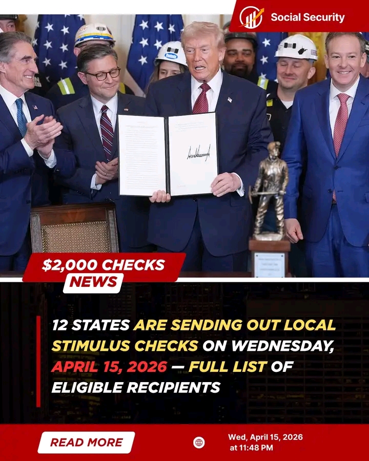 In a fresh wave of economic relief, 12 U.S. states are distributing local stimulus payments on Wednesday, April 15, 2026, aiming to support residents facing ongoing financial pressures from inflation and cost-of-living increases.