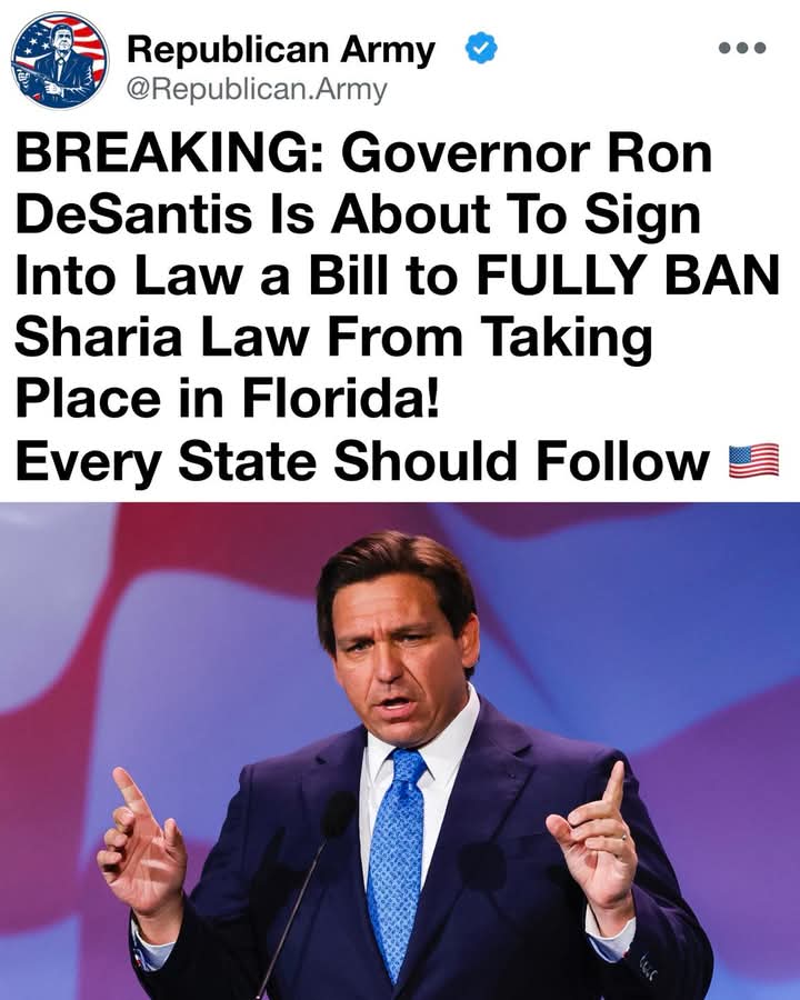 Just In : Florida is taking a firm stand to protect our American way of life. House Bill 1471, now heading to Governor Ron DeSantis for signature, explicitly bans Sharia law and any foreign or religious legal codes from overriding our courts and Constitution.