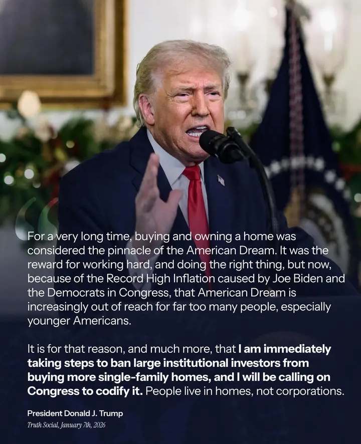 It was the reward for working hard, and doing the right thing, but now, because of the Record High Inflation caused by Joe Biden and the Democrats in Congress, that American Dream is increasingly out of reach for far too many people, especially younger Americans. It is for that reason, and much more, that I am immediately taking steps to ban large institutional investors from buying more single-family homes, and I will be calling on Congress to codify it. People live in homes, not corporations. I will discuss this topic, including further Housing and Affordability proposals, and more, at my speech in Davos in two weeks.