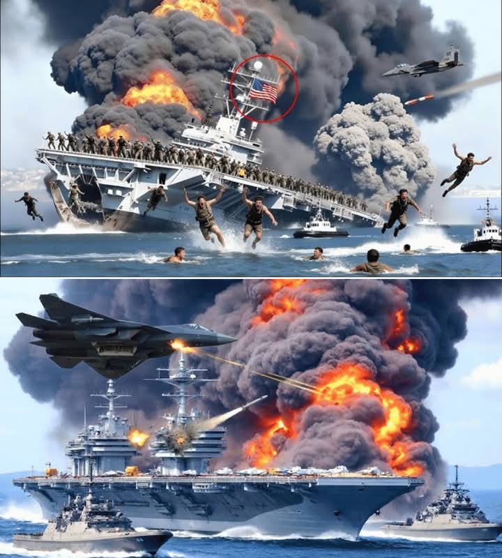 In a brazen and terrifying display of military power, seven unidentified fighter jets have executed a devastating surprise attack, completely sinking not one — but two American stealth aircraft carriers.