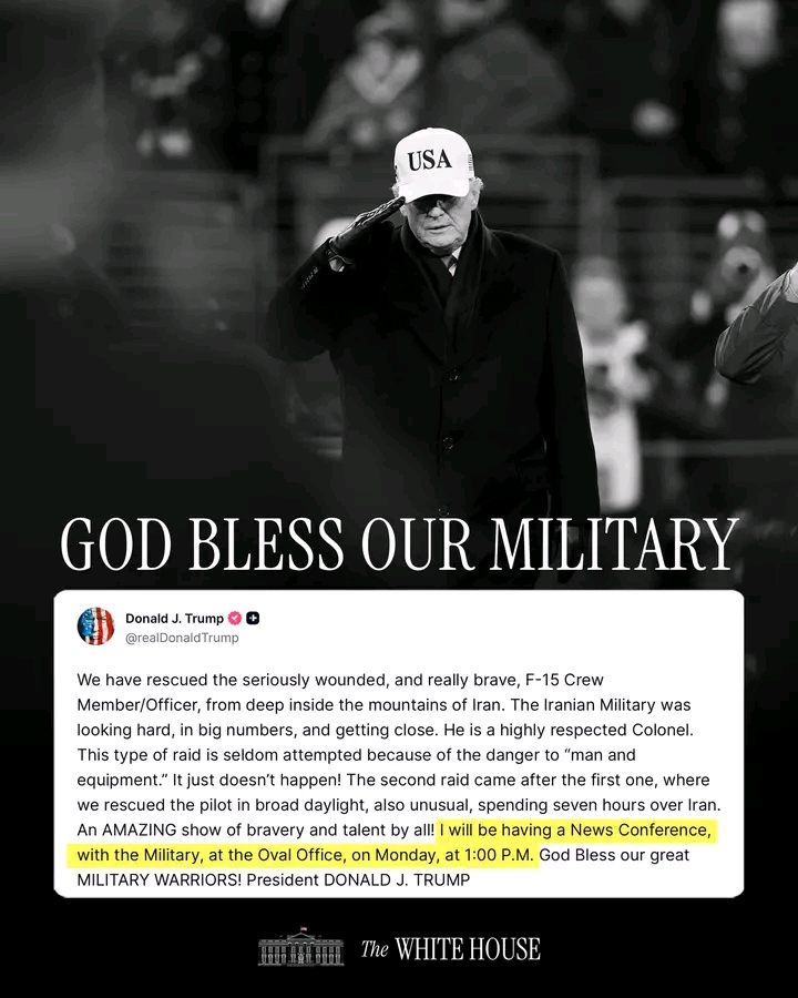 President Donald J. Trump to hold a major news conference alongside our Military in the Oval Office, Monday at 1:00 P.M.