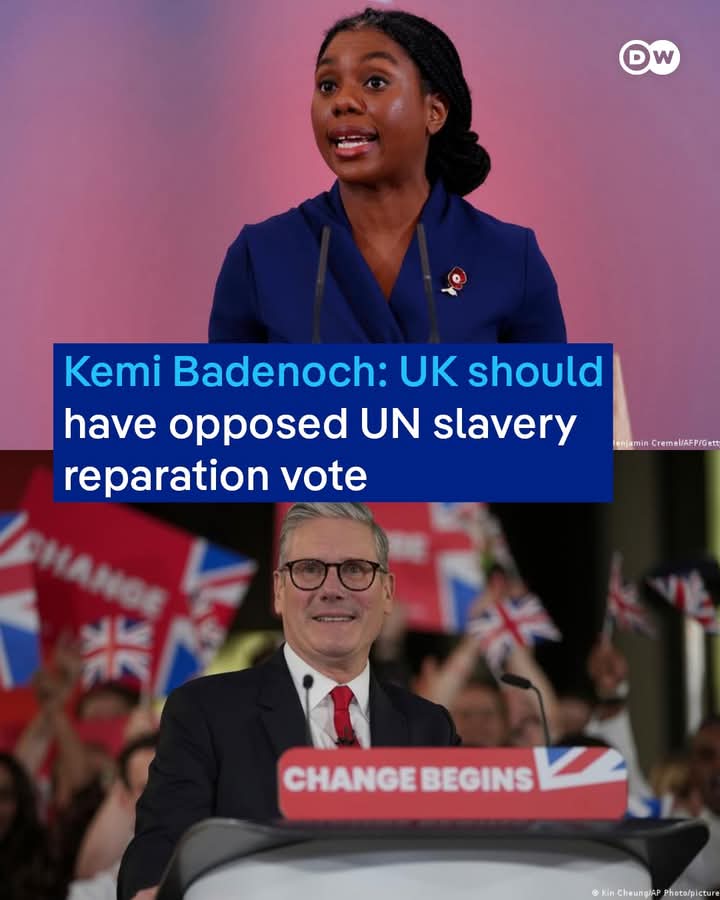 The leader of the UK Conservative Party, Kemi Badenoch, says Britain should have voted against the UN resolution, which described slavery as the greatest crime against humanity and demanded slavery reparations from former colonial authorities.