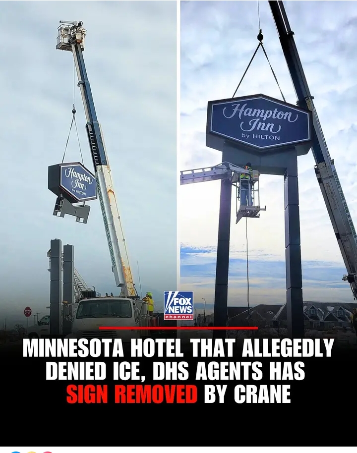 UP AND AWAY: Crane Removes Hotel Sign After Minneapolis-Area Property Allegedly Refused to Accommodate ICE Agents.